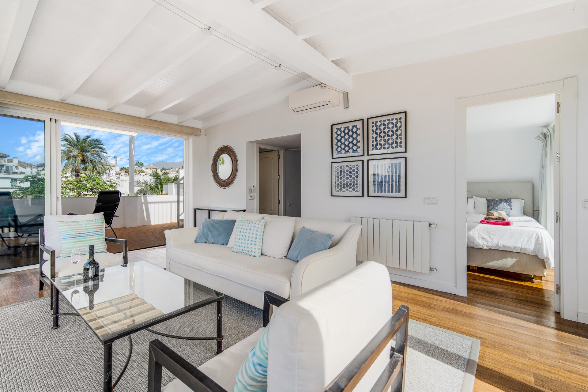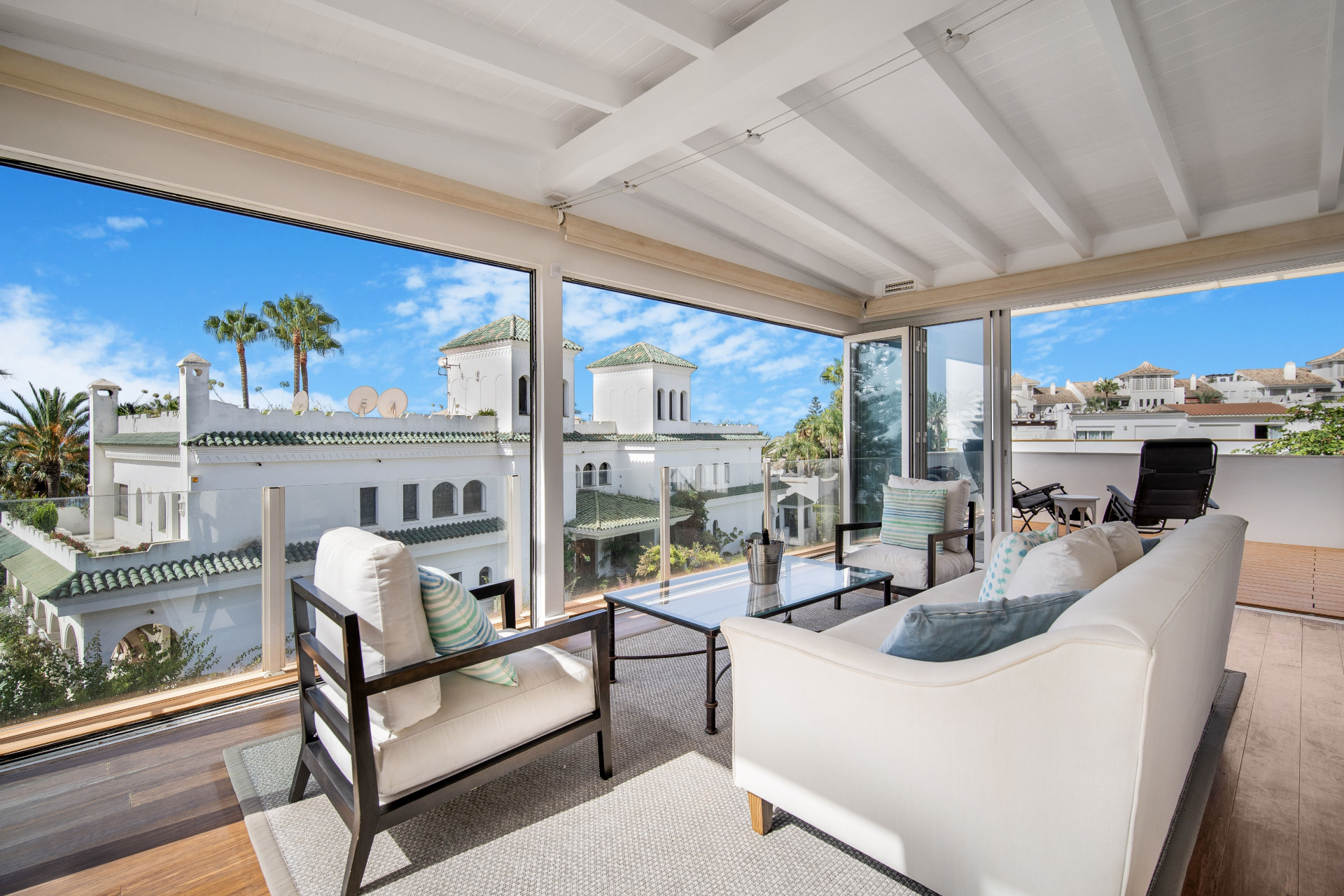 Casa Del Sol is a stunning, newly reformed three-storey townhouse in a small community called Marbellamar, which is on the best beach in Marbella in one of the most exclusive areas in the whole of Europe, Marbella's famous Golden Mile. Here you can chill out and relax or rub shoulders with the rich and famous depending on your mood